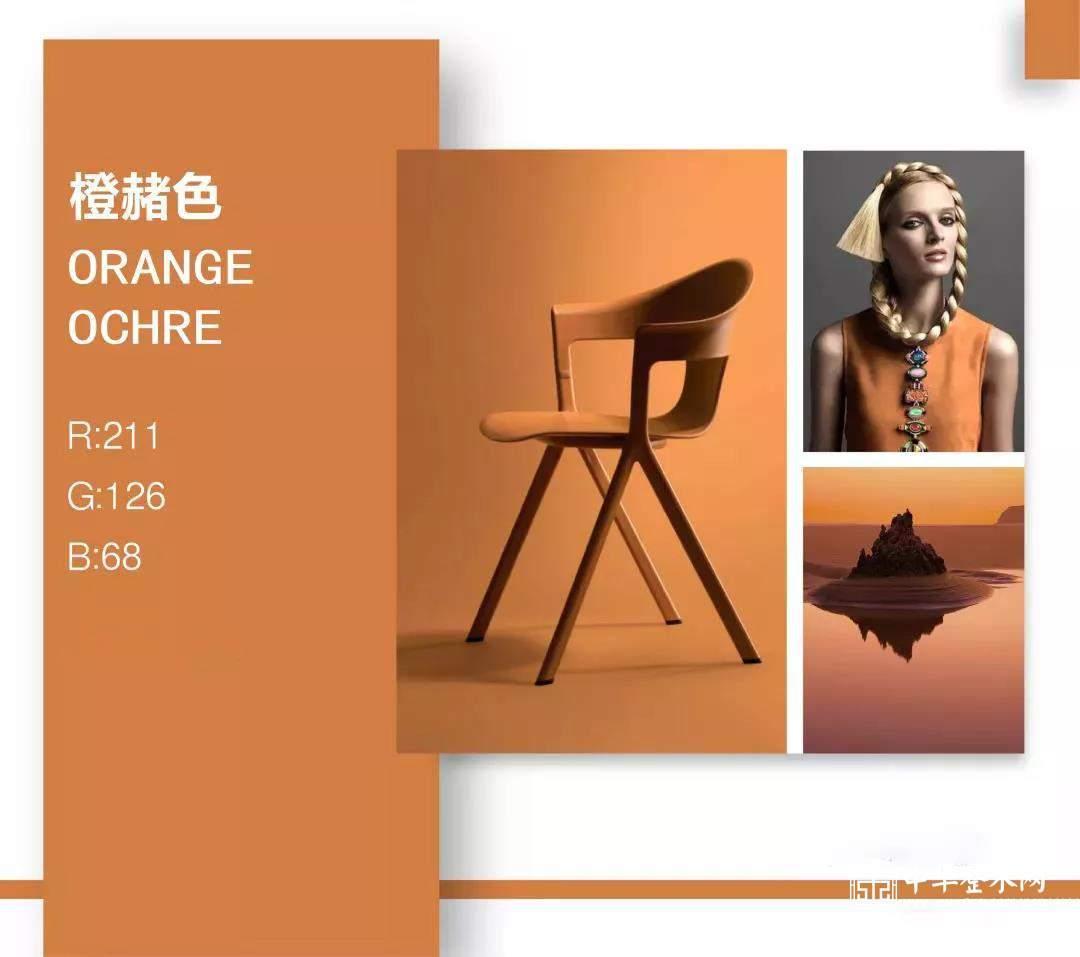 ORANGE OCHRE(橙赭色)。橙色的本身所具有的暧昧感使得它比红色更加温和,比黄色更加老练,使它有一种中性的魅力。因此,在各种商业设计中,橙色比红色和黄色应用得更为广泛。橙赭色更是橙色中的贵族,它的稳重气质与奢侈品界低奢深沉的氛围相得益彰,从众多色彩中脱颖而出,被打上奢侈的时代标签,深沉的的橙赭色,无疑是最具代表性的时尚感召力,经典、至精至美,无可挑剔的。