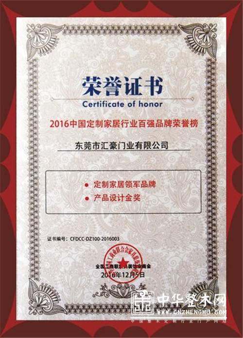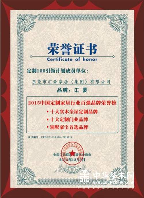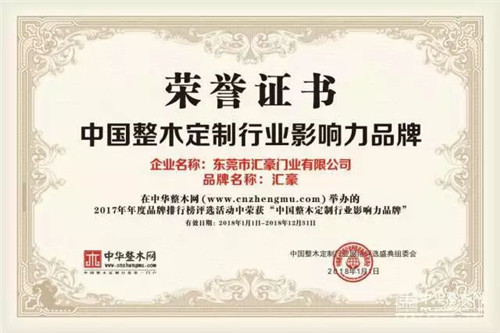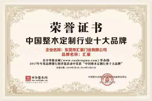 汇豪家居是中国家制家居行业协会和中国建筑装饰协会整木定制分会双料“执行会长”单位,并多次荣获“广东省名牌产品”、“中国定制行业领军品牌”、“中国整木定制行业十大品牌”、“中国定制行业质量品牌5A示范企业”、“别墅豪宅首选品牌”等全国荣誉,是定制家居行业的领军企业和“匠心制造”典范代表。
