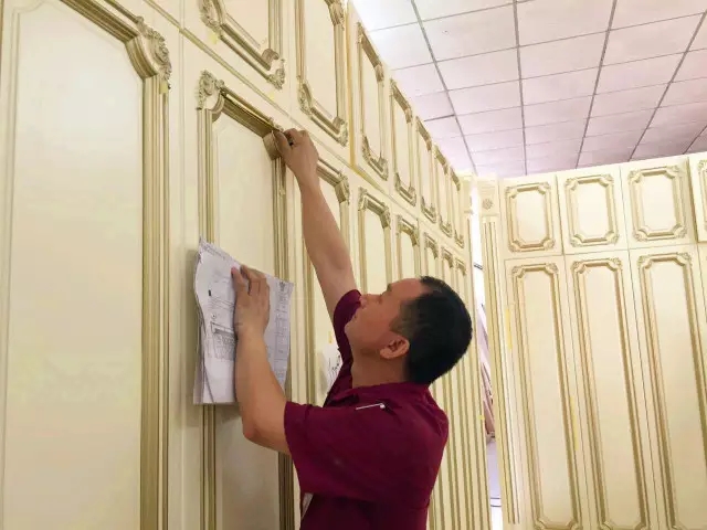 譬如木门工艺从备料到检砂流程有十七道,同样也有十七道质量标准。白胚木门、门框、窗套、线条、帽头、脚线均按标准尺寸