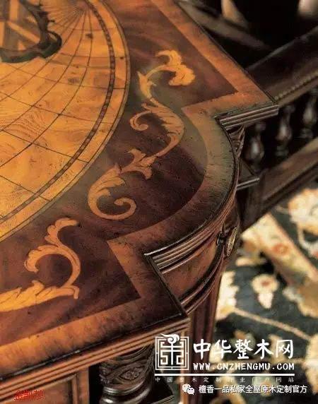 木材以其温润、饱满、天然不规则的属性征服了人类,木材的美不仅限于常规的美,“檀香一品”的匠师以木料选材将直纹、山纹,色彩在黄金比例搭配上碰撞出绚丽的拼花及拼版工艺,将本身天然属性的木材有效地被利用,还大大地提高了美感。