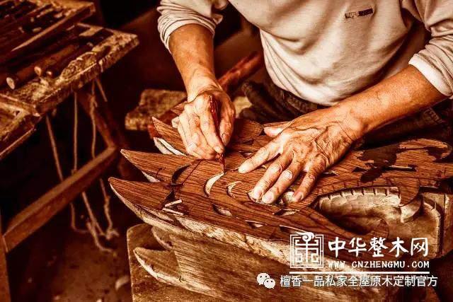 檀香一品的匠师们,多数已有数十年的雕刻经验,他们早已与手中的良木形成了很好的精神交流,如同一颗种子投入土地那一刻,就开始变成参天大树的历程,一块良木经过匠师之手,就开始通往名贵家具的锐变之路。