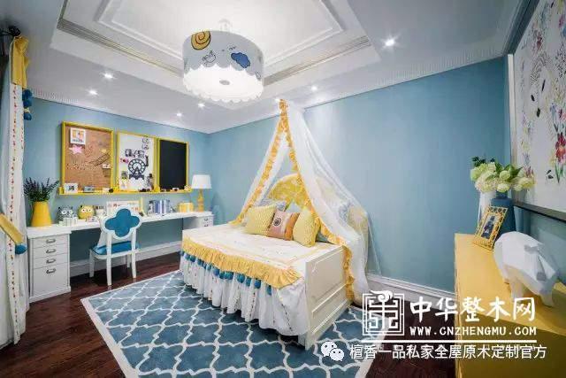 这个儿童房借助玩偶和卡通布艺等营造出了一个非常可爱的童话世界,而小孩子的玩具、衣物也要注意收纳,床底的两个大大的蓝色收纳箱,则可以有效的解决这个问题,色调柔和,和整个卧室非常协调。