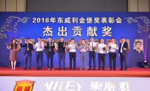 2018年东威利金堡奖表彰会,颁发了杰出贡献奖、最佳形象奖、金销商奖、杰出员工奖、团队PK奖、设计创新奖、优质供应商奖。