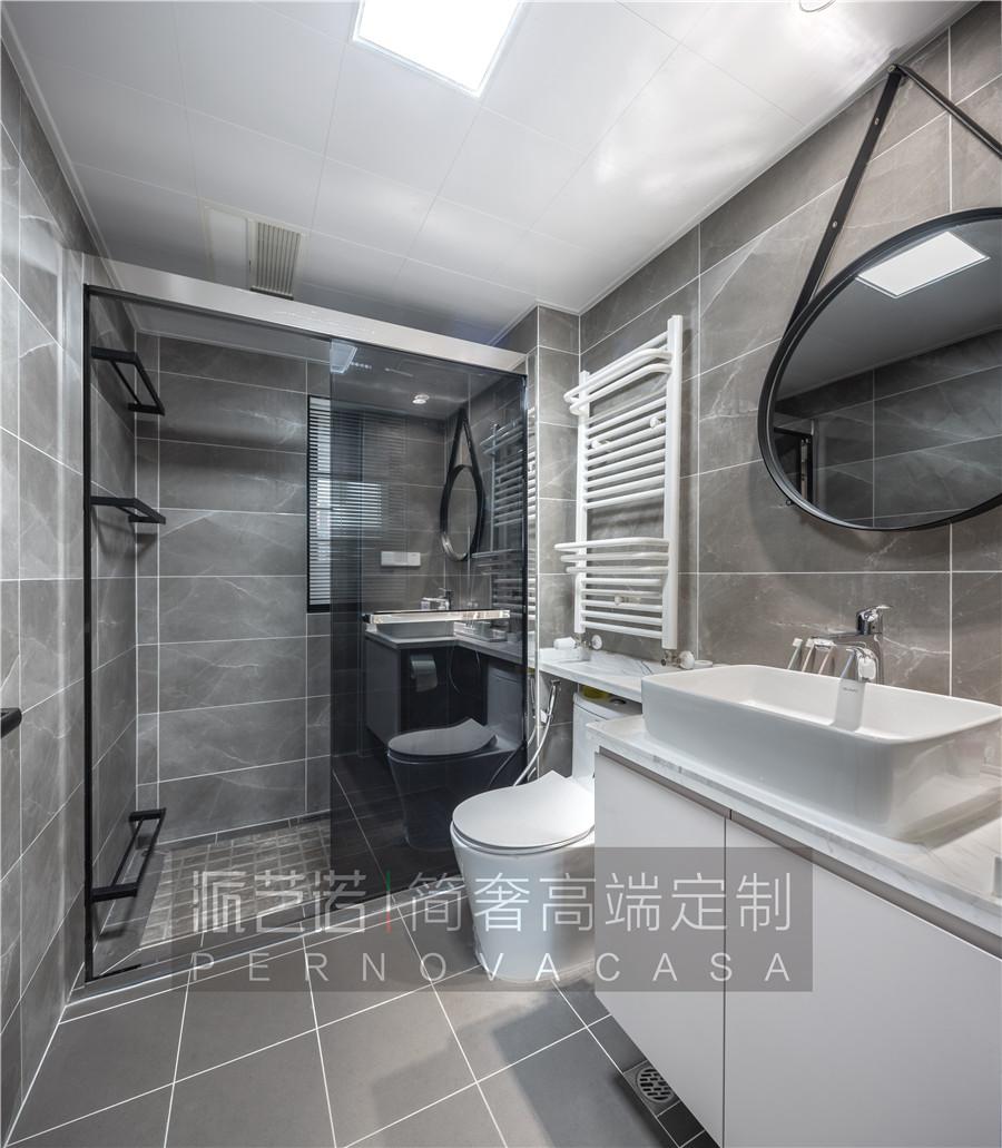 ▲半开放的卫生间,实现了干湿分离,黑与白的碰撞,品质与艺术的融合,无不展现卫浴空间的简洁与低调。