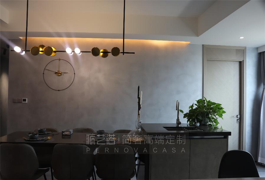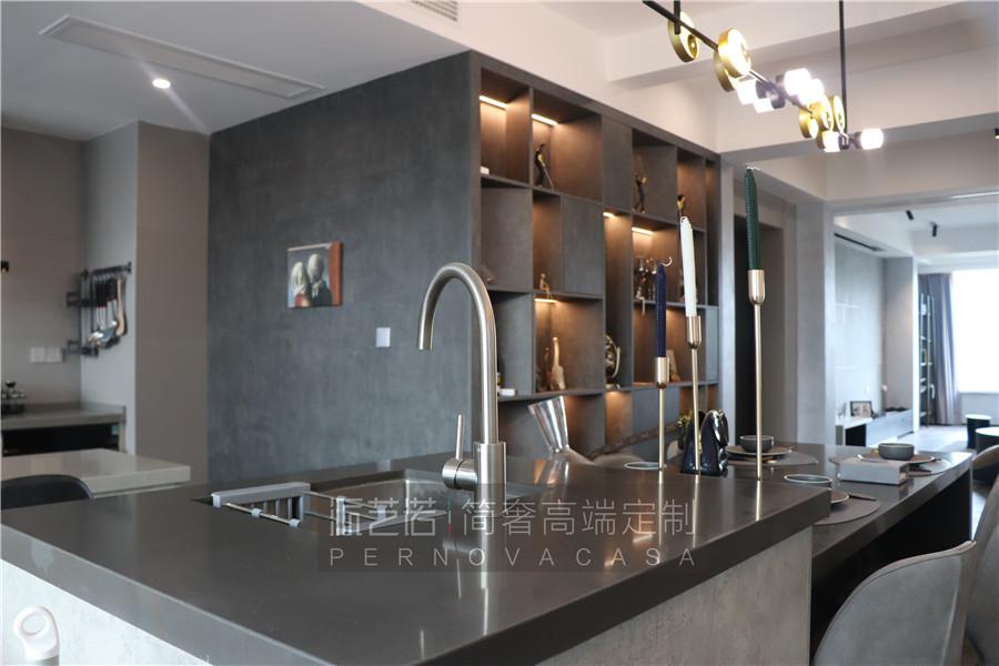 定制餐边柜设置了洗手池,方便日常冲洗及在此处进行简单的备餐。餐厅除了满足生活功能,还兼顾着家人之间情感互动,这不仅是就餐空间,也是家人互动的情感纽带。