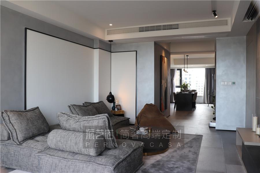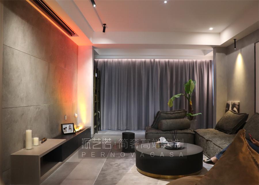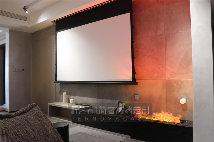 客厅电视背景立面在井然有序的块面组合衬托下,辅以中性优雅的ICC进口瓷砖,延展出纯粹的层次感。悬挂投影式电视机,在家也可以感受到电影院的视觉效果,高端科技化设备带来的高贵感。