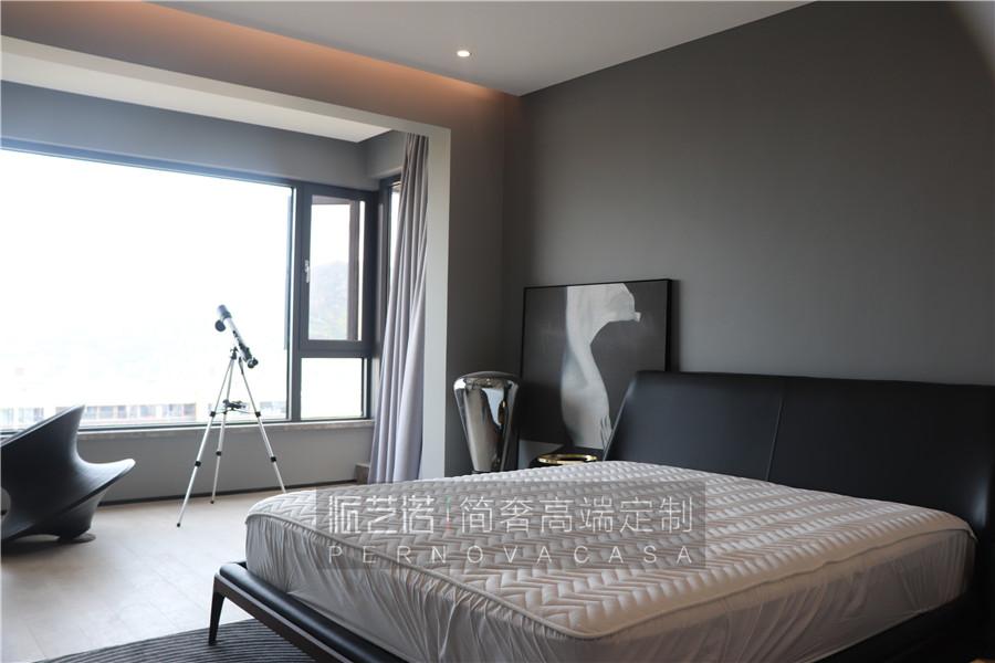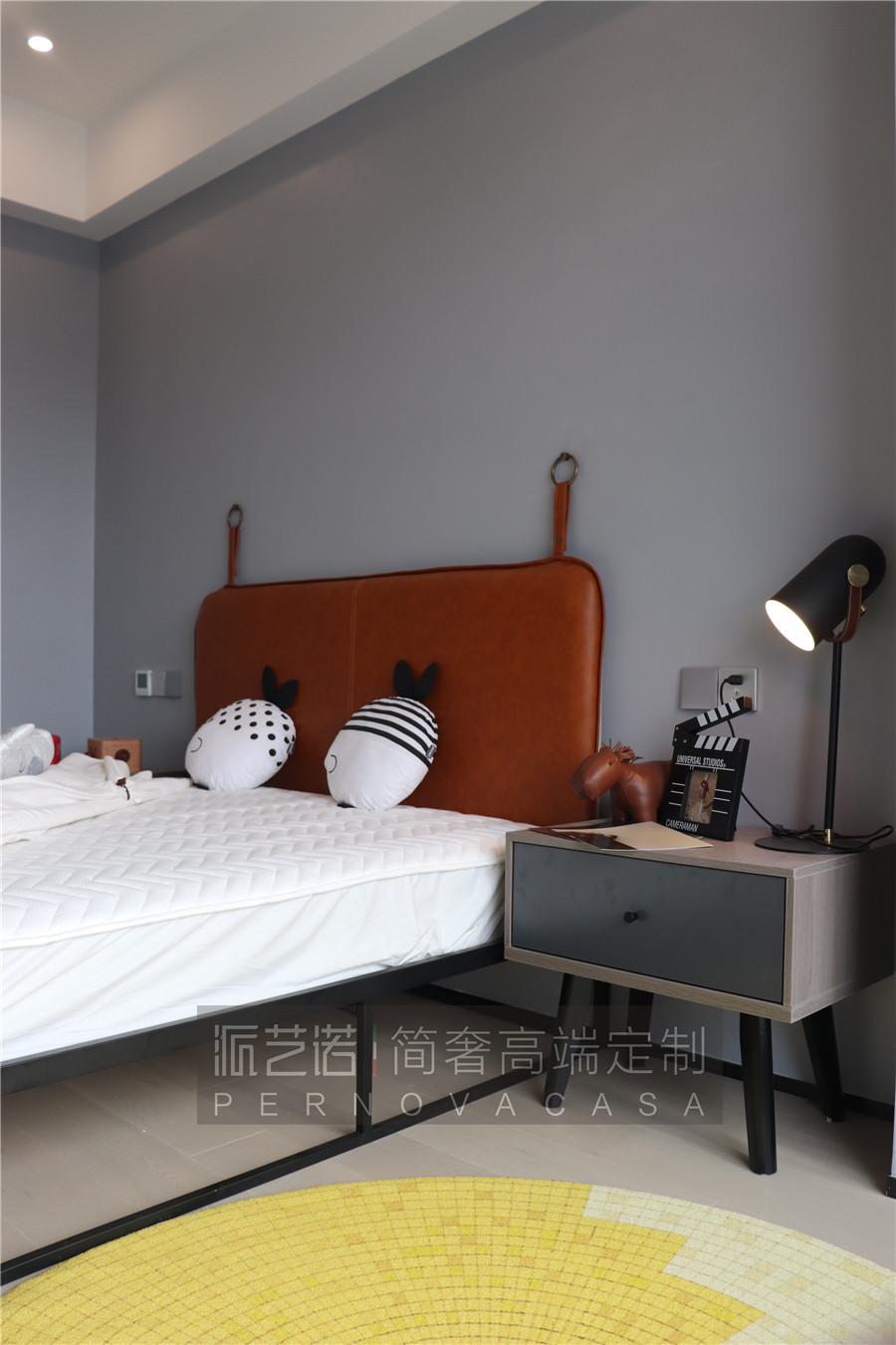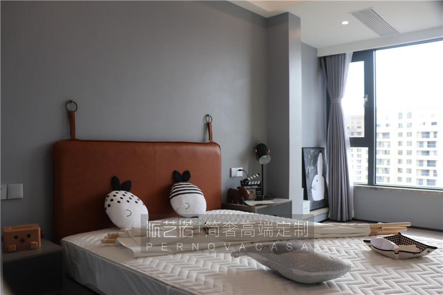 儿童房以明亮舒适为设计标准。浅灰为主色系呈现空间面貌,飘窗引入自然光源,与室内光源糅合融入,增强空间通透性及质感。