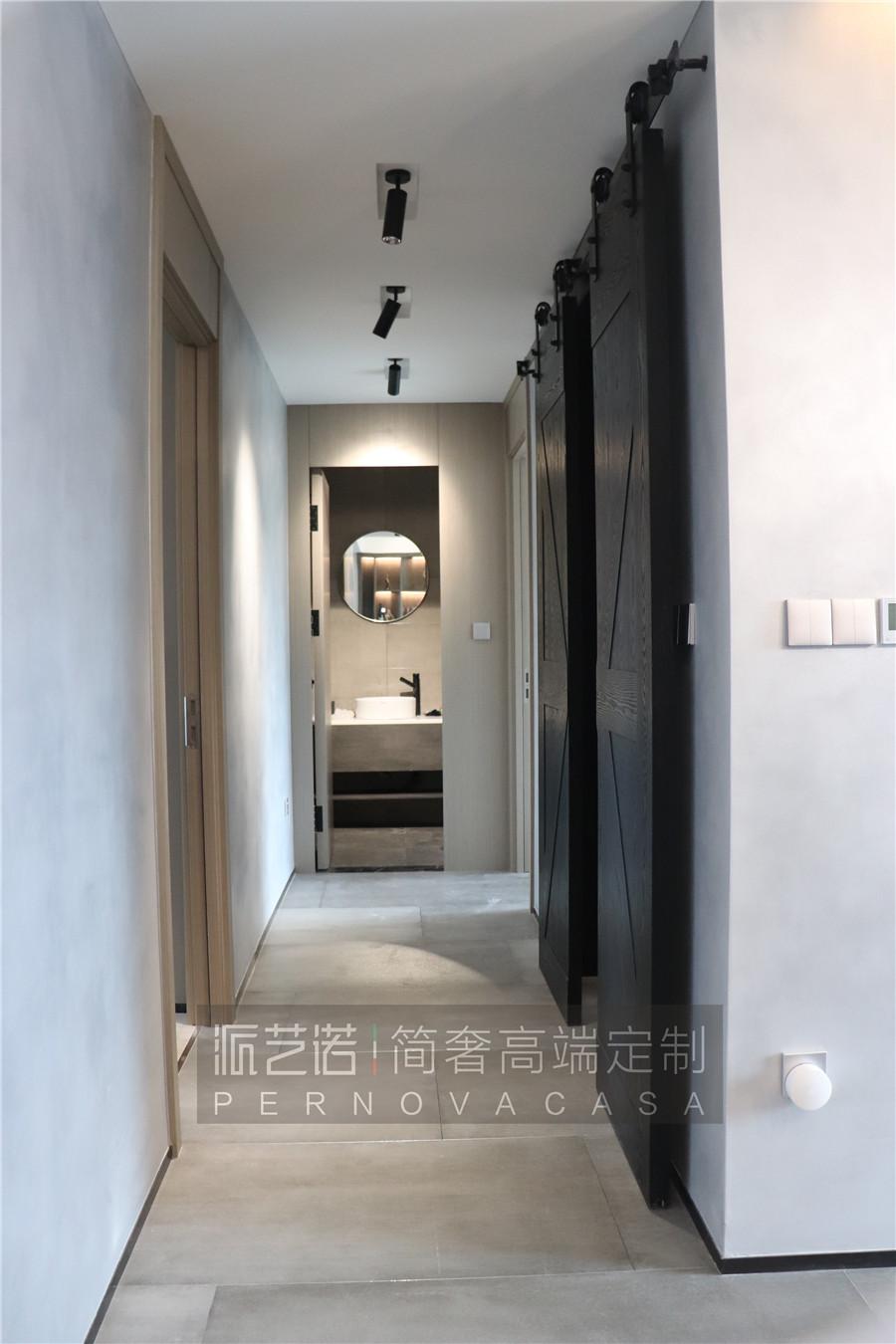 过道空间的色彩和肌理,既精致,又带着几分艺术色彩。恰到好处的木作移门,勾勒出立体轮廓感的同时,也为空间叠加上一层优雅的气质,让生活更富有艺术感。