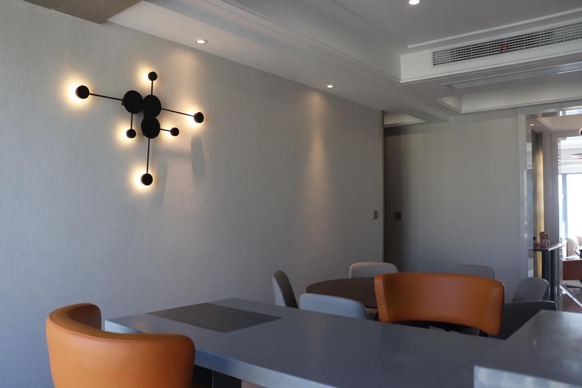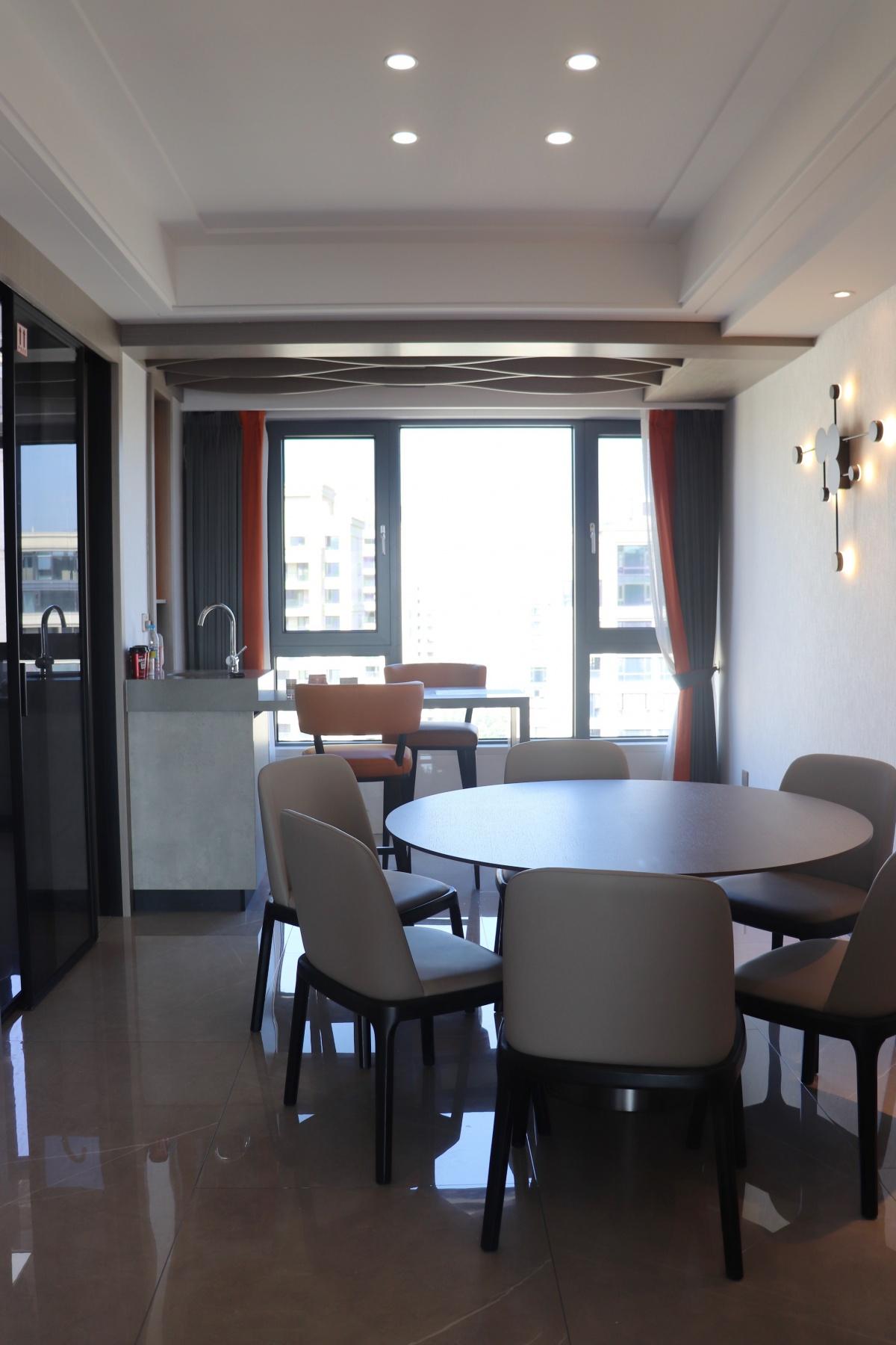 ➯时尚感十足的墙面灯饰,灵动而简约,低调优雅的米色餐椅,明亮而温馨,用餐空间惬意舒适,展现从容生活况味。