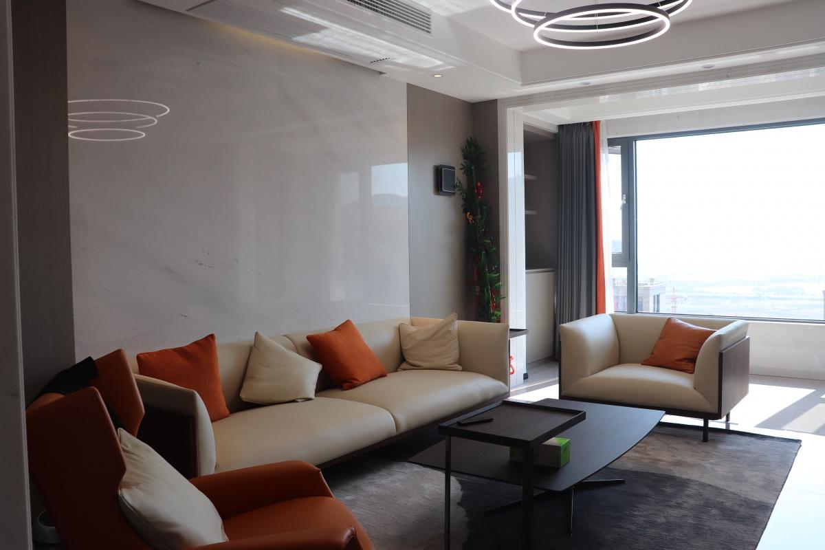➯质朴温暖的定制木作产品奠定空间主基调,用爱马仕橙色的软装做点缀,整体沉稳又不活泼。摒弃繁琐华丽装饰,借以淡雅的色调,简洁的家具,凸显回归自然的意境,使得居家更加舒适轻松。