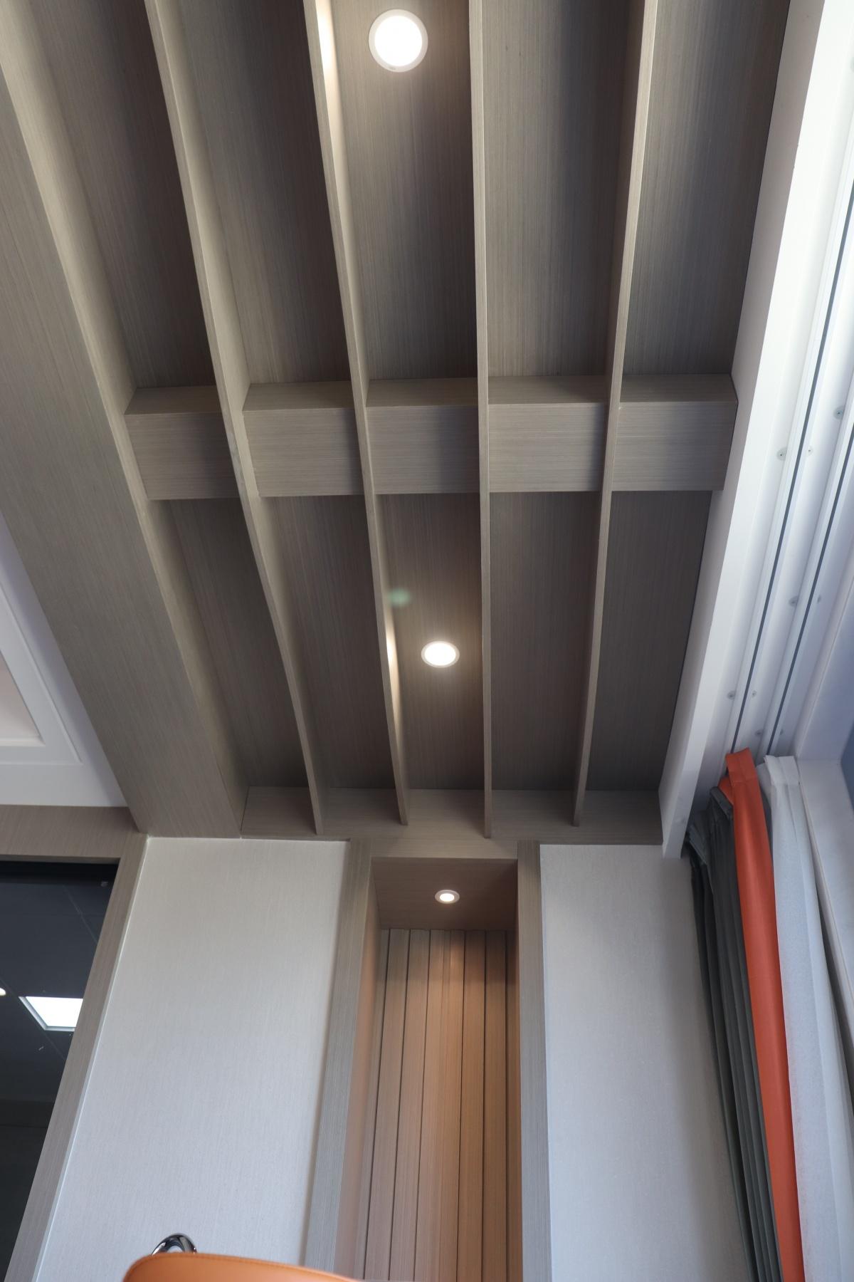 ➯过道饰面,同样采用银梨木皮,其纹理细腻,地表达着复古的风情,演绎低调的浅奢情调。