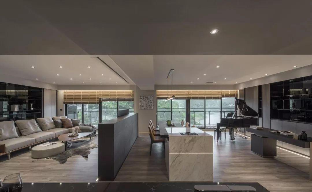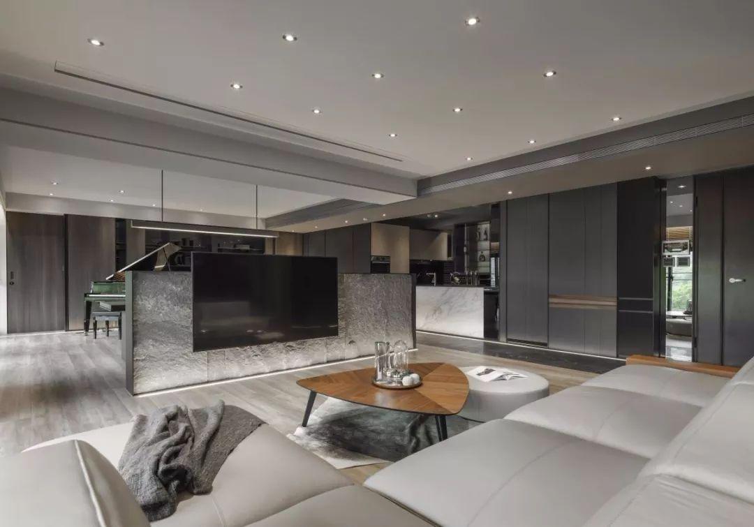 意式极简装修的大平层空间里,一饰一物都没有过分的奢华与浮夸,而是通过定制的木作与造型让空间更赋高级感,在低调中彰显精致、有品位的生活格调。