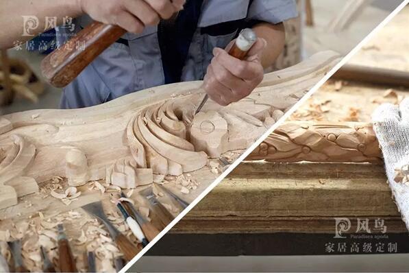 欧式雕刻精华在于一切从美出发,一切服从于艺术,跟风鸟家居高级定制所追求的以美为第一首要准则不谋而合,正是对美、对艺术的追求,风鸟的手工欧式雕刻才逐渐成熟、精益求精,达到天然立体的浑然天成。