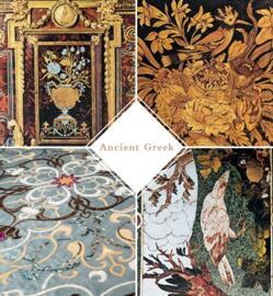 薄木拼花源于古希腊。浪漫的大绿海孕育了技艺精湛且艺术造诣高超的匠人,他们将多种木材制成花纹美丽、色泽悦目的木片,镶嵌在薄板饰面上,描绘出丰富的图案画面。