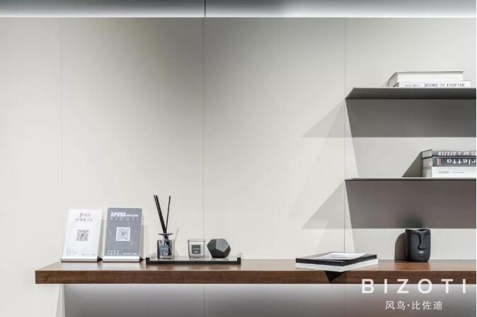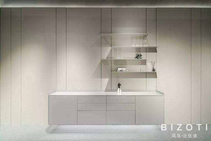 第二,简单与简陋之间的距离,既近又远,中间隔着的就是品质感。从这个角度来说,极简主义的“极”不止是对“简”而言,更是对品质感的极致要求。品质感首先来自材料,极简主义一定要选用环保的板材,在这一点上绝不会“简陋”。就像比佐迪的极简主义产品,基材是德国进口定向欧松板,具有极高的环保性,即使刚装修完也不会有味道。除此之外,五金、饰面也是关键。这一点其实与生活方式是相通的,舍弃掉那些不必要的,剩下的自然要是好的。