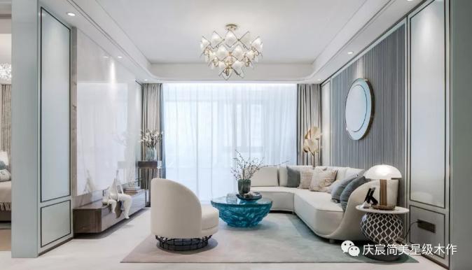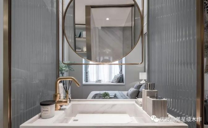 The art that independent wash one's hands face and suspension hang lens, without without highlighting the illicit that custom-makes exclusively to enjoy quality feeling. Art space gives people a beautiful yearning for life. The expectation of future family life makes the whole master bedroom space infiltrate in the happiness like sapphire.