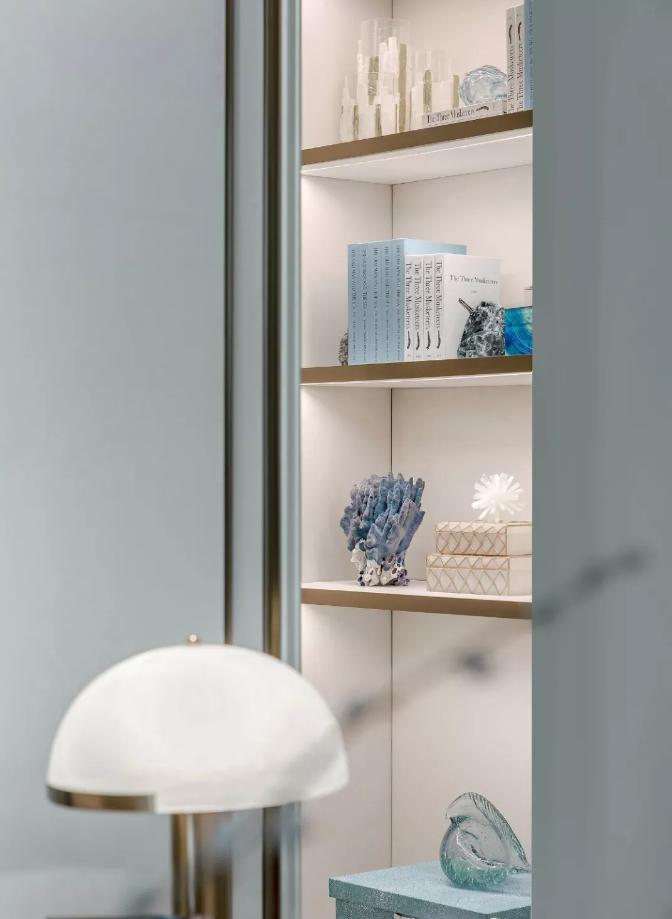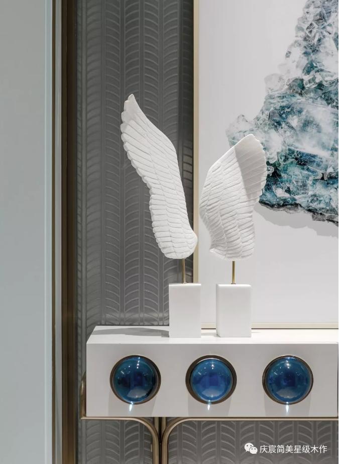 入户玄关是一副精致细腻的背景画,搭配白色艺术摆件,现代人居住需求不仅要具备时尚美感,还要充满色彩艺术,就好像生活,既要有平静的时光,又要点缀意外的惊喜。这一抹巧妙的蒂芙尼蓝点缀在玄关,纯粹柔和清新灵动,足以装点一天的好心情。生活,需要艺术的参与。
