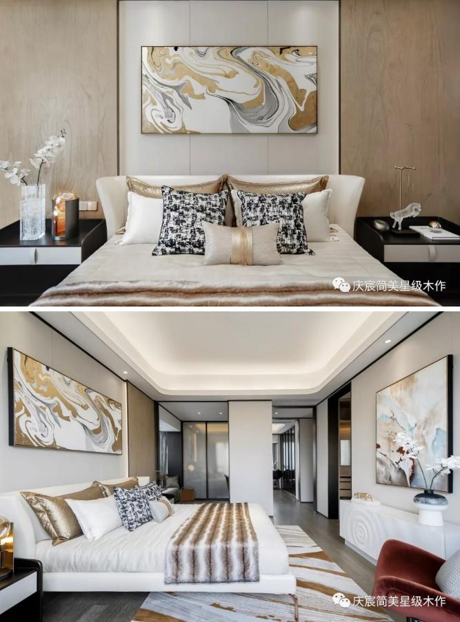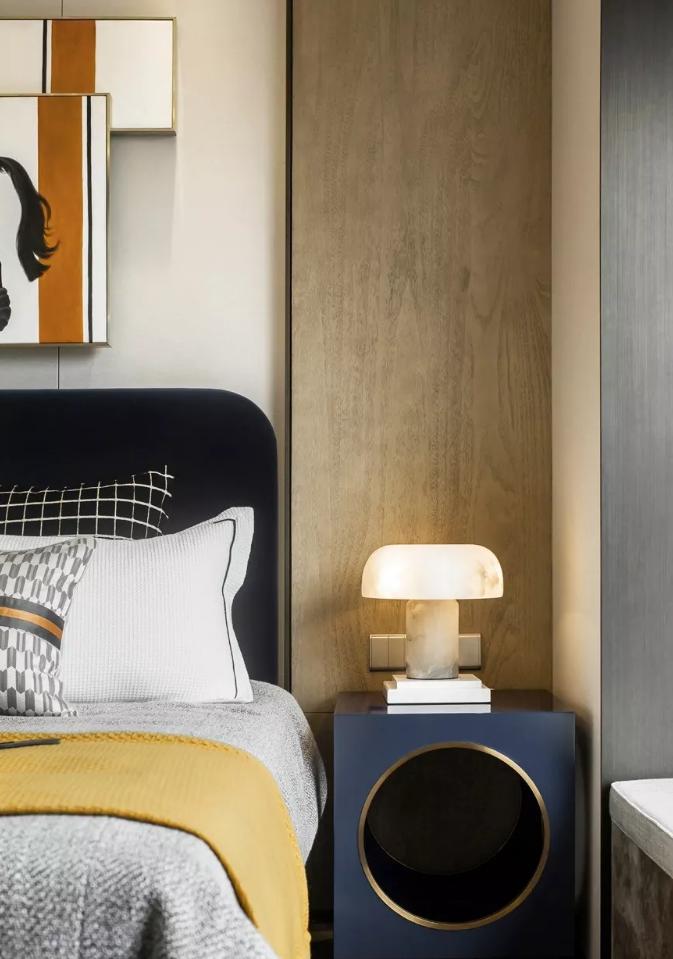 Do not deliberately pursue luxury and romance, the master bedroom in the overall design, biased to minimalism, emphasizing physical and mental relaxation. The artistic paintings are consistent with the carpet and bedding, and the two romantic flowers on the flower are complemented by the beautiful paintings on the side. The ergonomic chair is comfortable and elegant, and the romance of the whole space overflows.