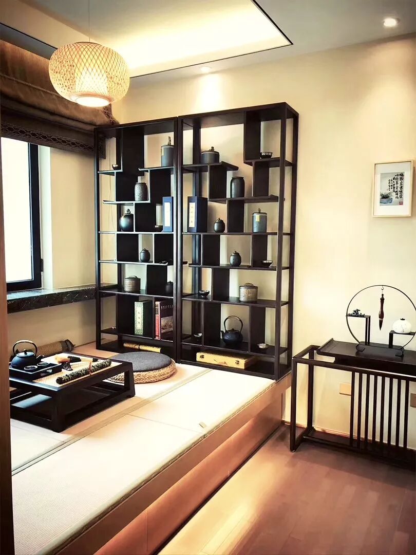 蕴含着古典元素的置物架,又与现代潮流的元素发生了精彩的碰撞,让空间看起来更加好看,没有中式的沉闷,却处处散发着中华传承之美。