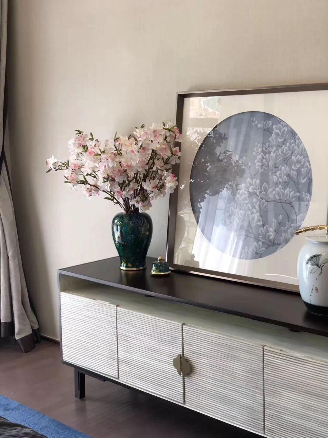 一画、一柜,这样的装饰放置,在很多的装修设计中都会出现,这是一种源于内心的情怀与空间文化韵味,再加入一花、一盒的搭配使整体空间更加流畅舒适。