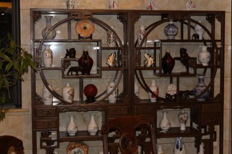 仿古架古典而优雅,外方内圆的木质结构,配以高超的雕刻技艺,使空间更具观赏性。