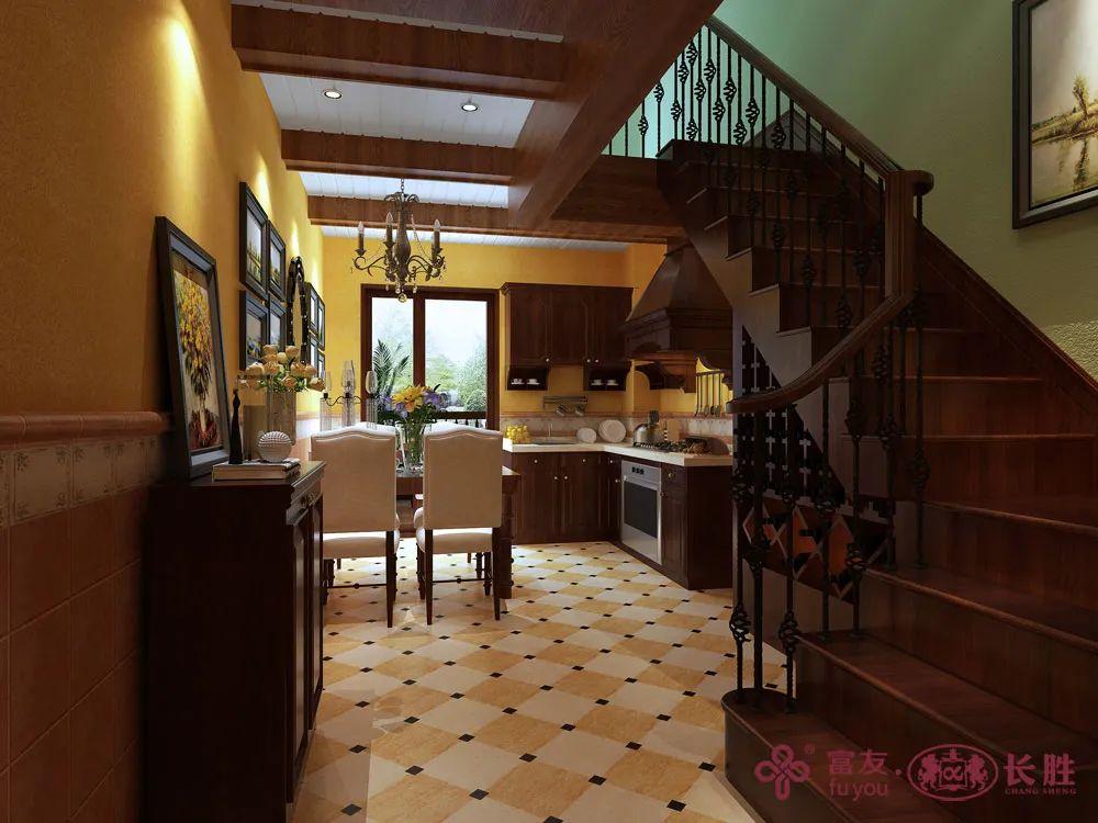 美式风格天花板装修喜欢用木线条装饰,而且也会加入些石膏线元素,给人一种与众不同的视觉感,得到很多消费者的喜欢和认可。