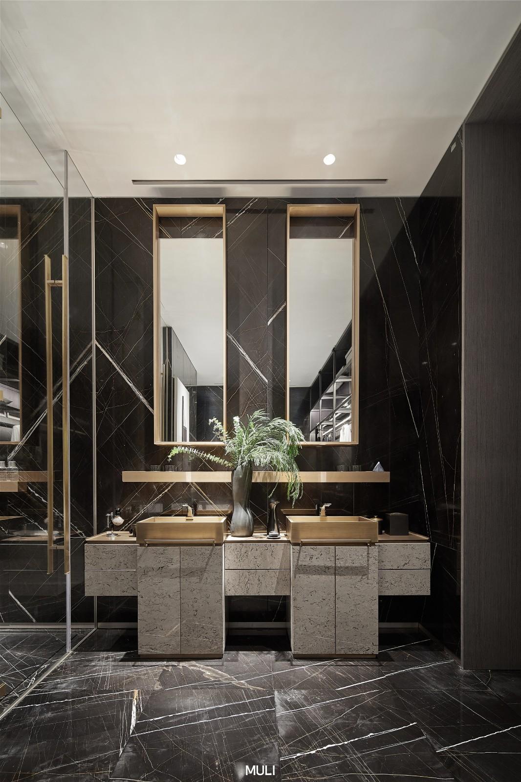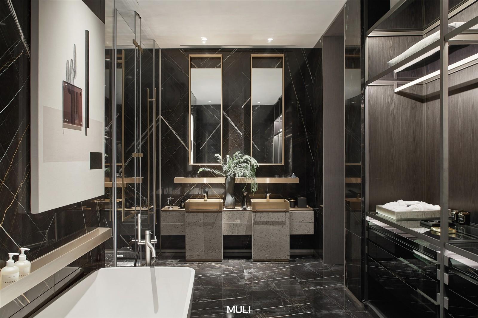 创新型材结构的设计,让收纳空间看起来更加精致、敞亮,选用接近自然的柔焦光线及智能调光系统,最大程度还原色彩、减少对人眼的刺激。卫浴空间以青山绿水为笔,取明月柔美为墨,描摹出一幅自然淡雅的生活画卷,营造了一种情景交融、心物合一、虚实相印的空间意境,其背后承载的是一种东方人文高定生活方式。