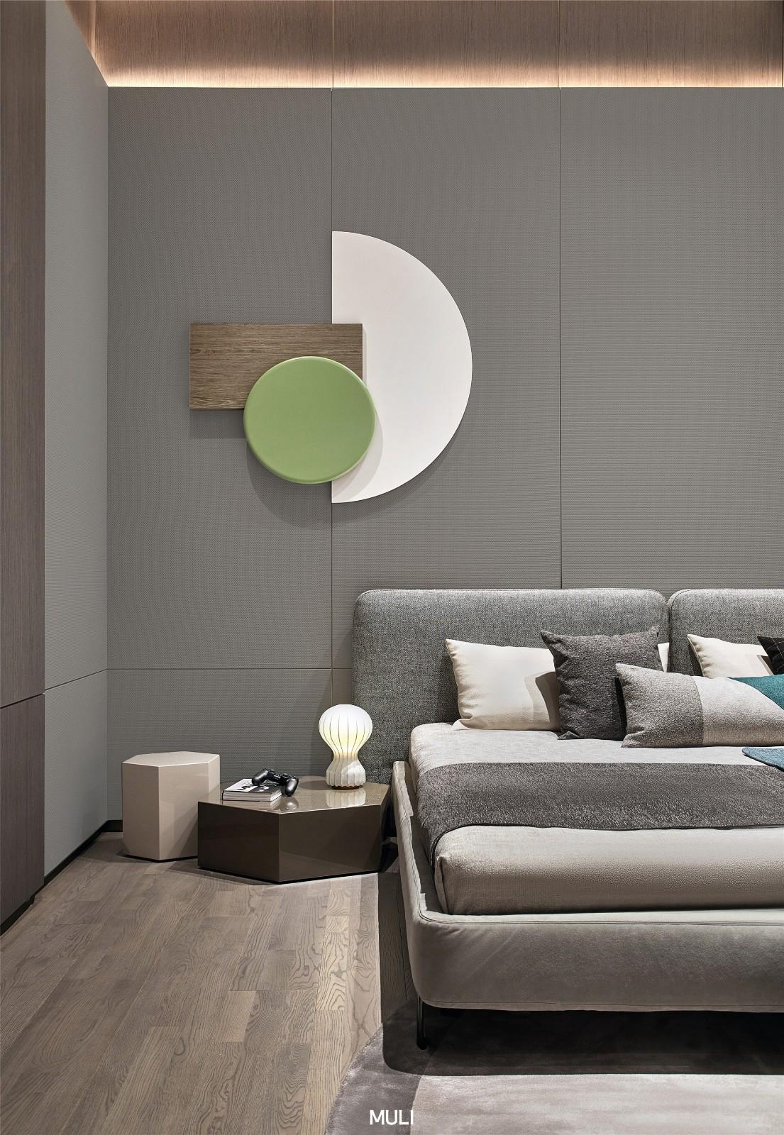 男主卧以中性色调为主,选用贴近自然的材质,吸附噪音、舒缓情绪,柔和的灯光,利于睡眠和休息,无需刻意维持,即可放松身心、回归平静。门后一侧是充满格调的男士衣帽间,温和木色与灯光的配合,让深处空间的使用者更加放松、舒适,除此之外,提供色彩及材质的个性定制,满足不同年龄层用户的喜好。