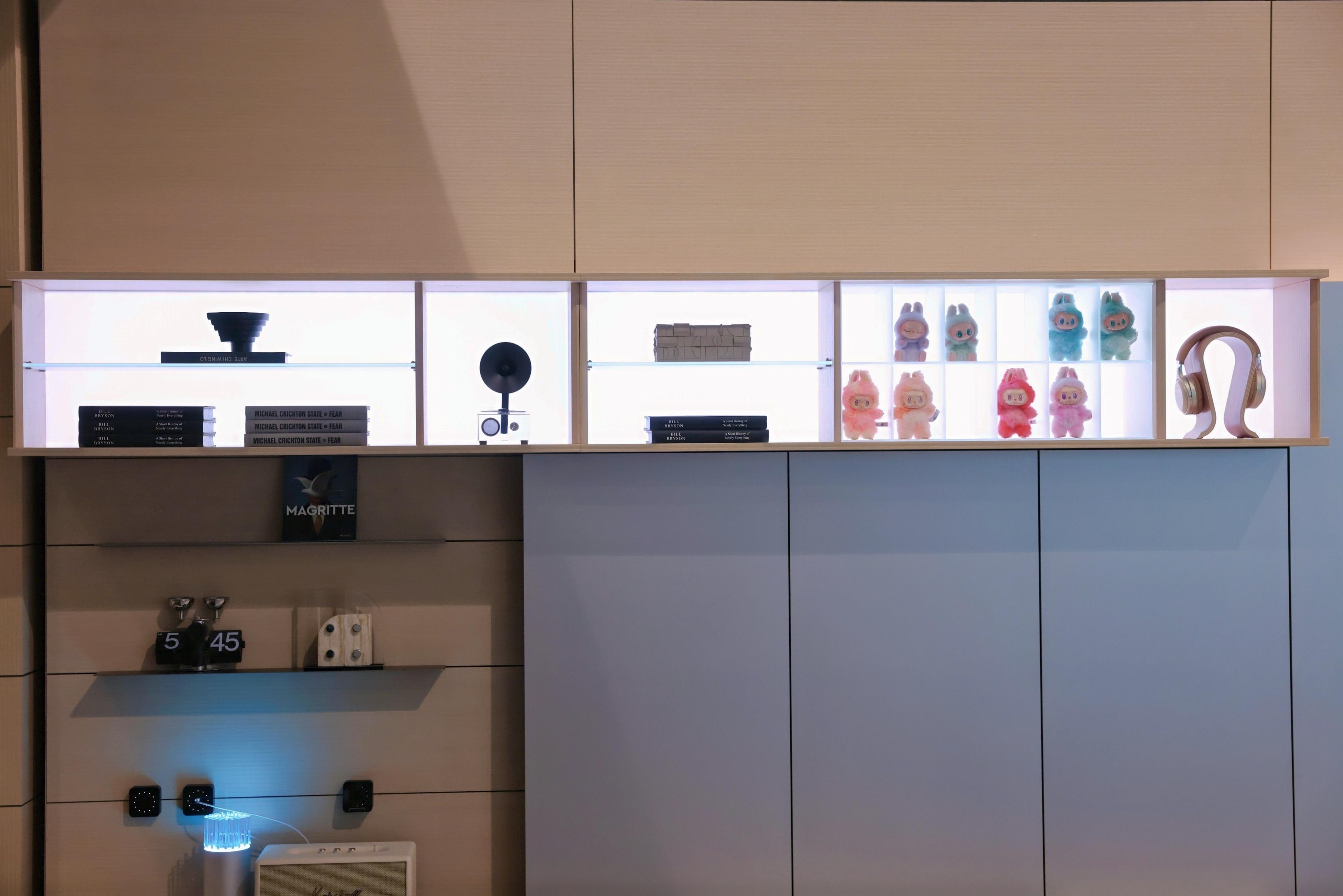 而对潮玩收藏者而言,幻彩深渊镜柜会让他们一眼沦陷。高清镀膜玻璃搭配可调RGB灯光,让手办不再是摆在柜子里,而是站在C位、打着追光,像在美术馆里展出一样。且可以随时调整灯光颜色,让每一件藏品在光影流转中呈现不同的情绪,成为空间的主角。