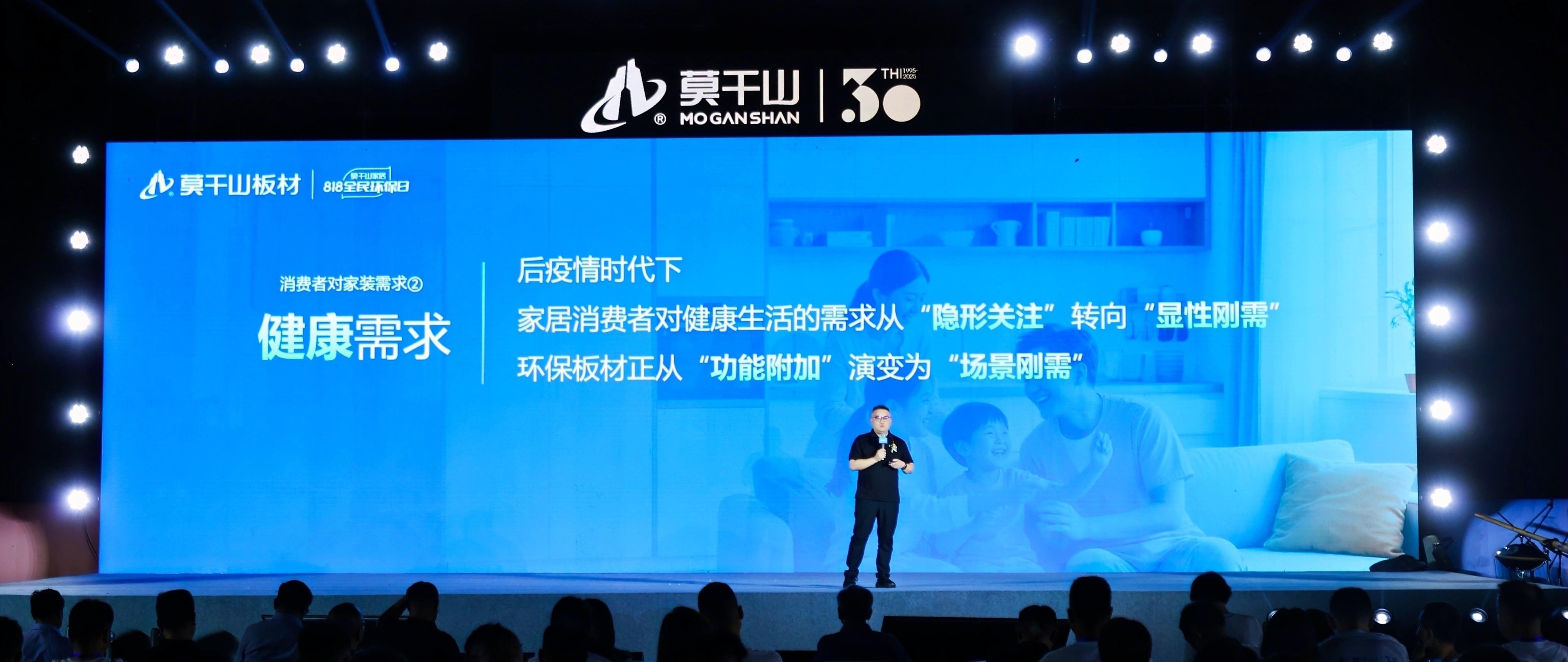 云峰莫干山板材总经理姚国良发布了莫干山板材 “疗愈系产品家族”,直击消费者日益增长的 “环保需求×健康需求×情感需求”复合型期待。