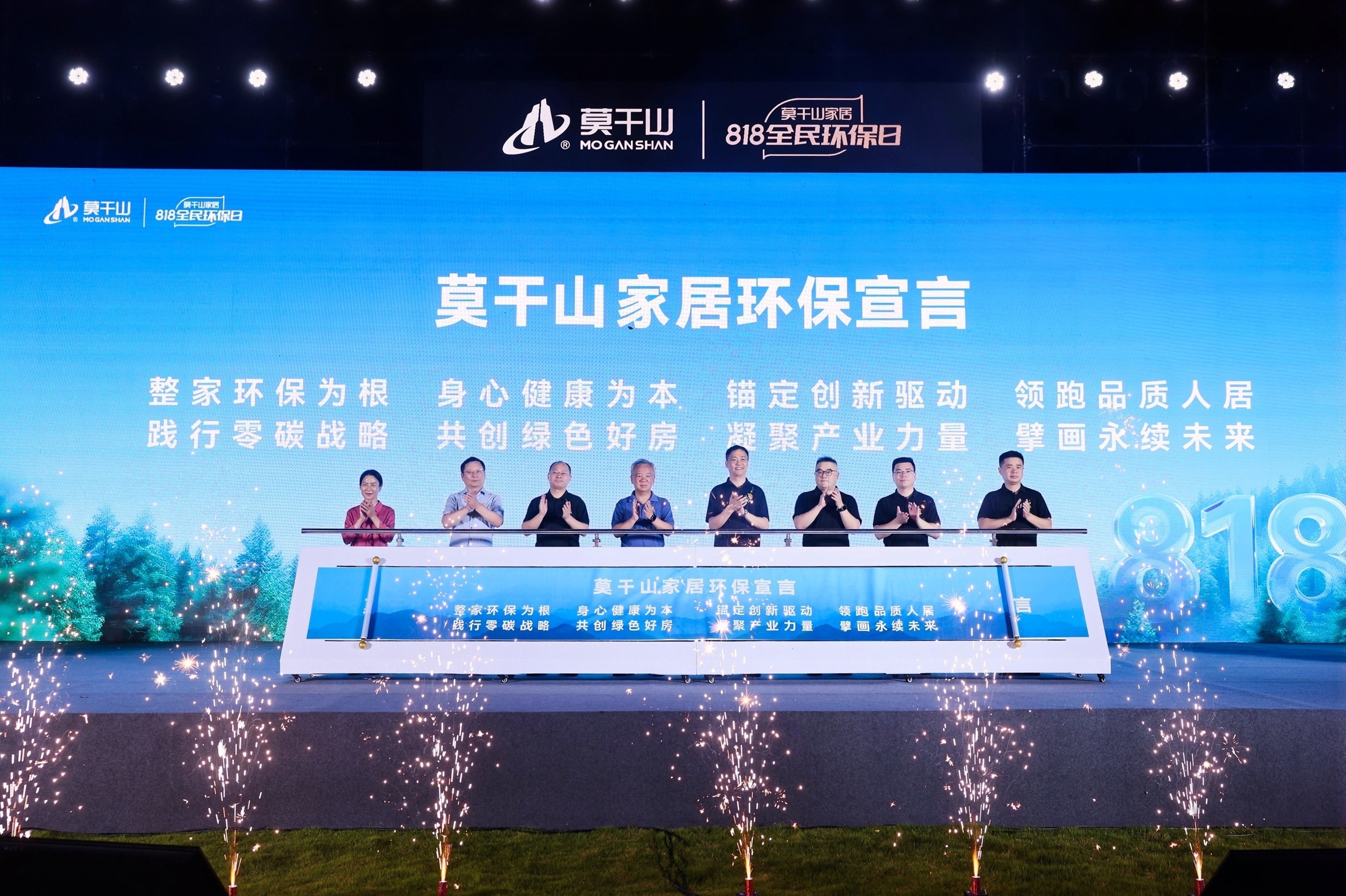 活动高潮环节,在全场瞩目下,八位嘉宾共同开启莫干山家居环保宣言启动仪式,昭示了莫干山家居引领行业向更高维度环保征程迈进的坚定决心与责任担当。