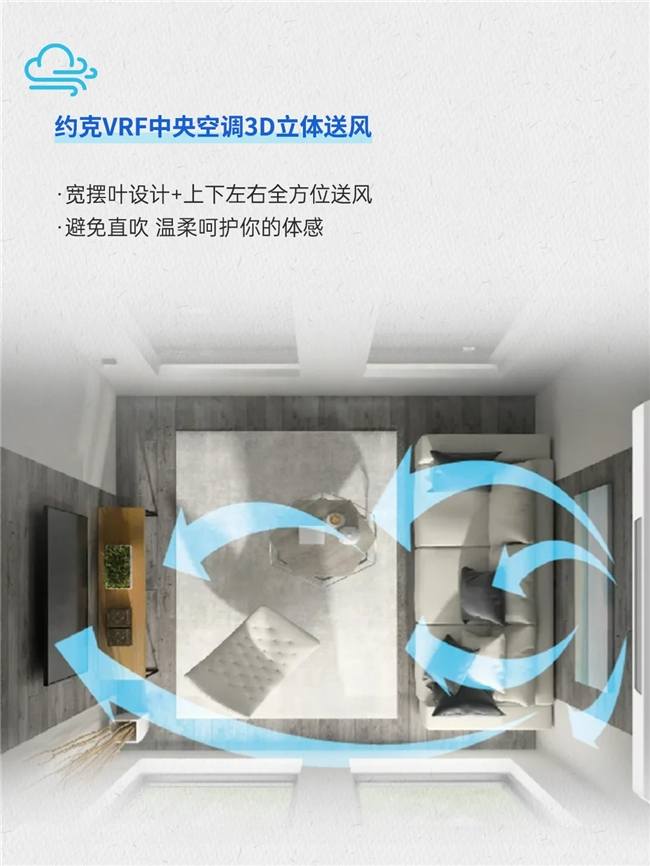 传统空调冷风直吹的问题,长期困扰着用户。强劲冷风对着身体猛吹,年轻人易头疼、关节不适,老人和孩子这类体质较弱人群,更是容易引发感冒、身体酸痛。约克VRF中央空调则以智慧科技,重新定义风感舒适。