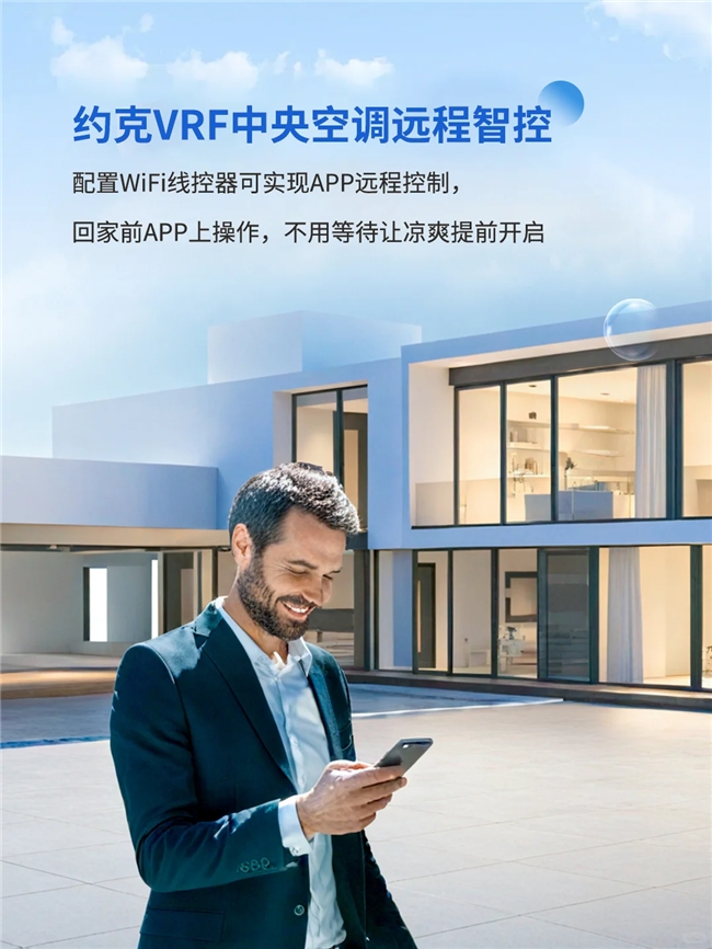 在智能交互维度,约克VRF中央空调凭借物联智控,打破时空束缚,让舒适触手可及。约克VRF中央空调搭载的全系自带NB-IoT物联智控模块,让手机等移动设备化身“远程遥控器”,无论身处公司、旅途,都能轻松遥控开启空调/地暖、调节室内温湿度、启动净化空气等,操作便捷又省心,提前为归家营造舒适环境。